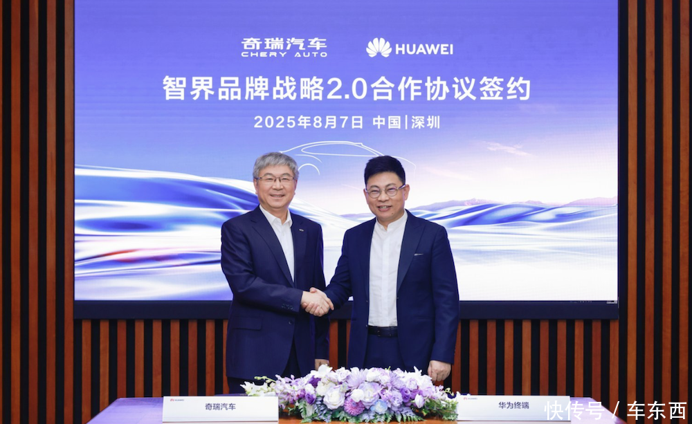 8月7日,华为常务董事、终端BG董事长余承东与奇瑞汽车股份有限公司董事长尹同跃,在深圳进行了智界品牌战略合作协议的签约。